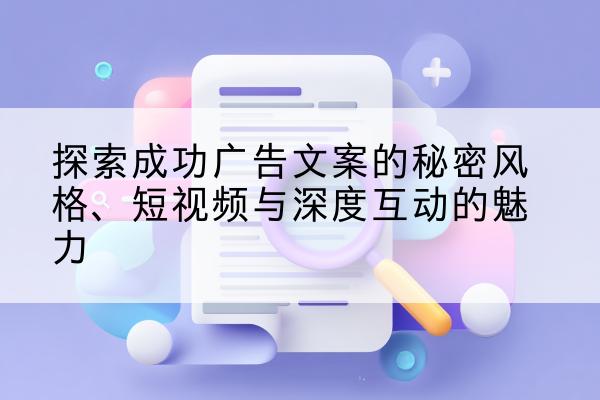 随着数字化时代的发展,广告文案已经不再仅仅是单纯的口号与描述。在这个视觉与内容交织的时代,一个成功的广告文案案例不仅关乎产品的介绍,更涉及消费者情感的触发与品牌价值的传递。本文将通过深入分析广告文案风格与短视频广告文案的技巧,揭示成功广告文案背后的秘密。